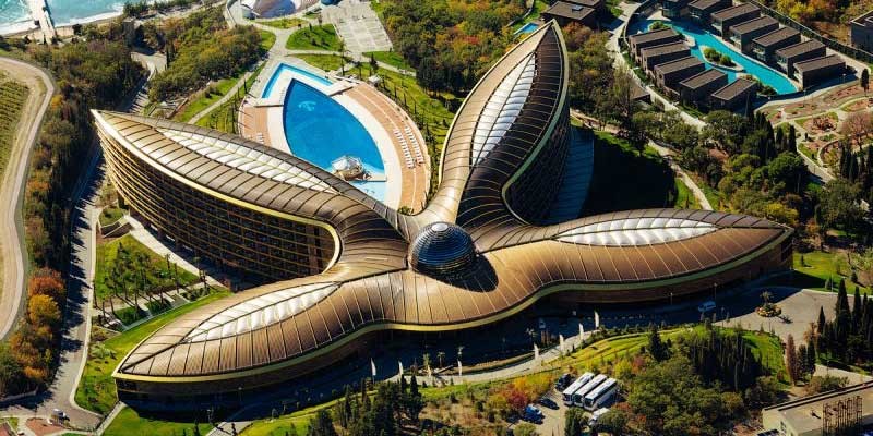 Mriya Resort & Spa - уникальный гостиничный комплекс, который открылся в 2014 году в Крыму. Над концепцией проекта работал известный британский архитектор Норман Фостер, создатель таких объектов, как: стадион “Уэмбли”, мост “Миллениум” в Лондоне, небоскреб “Торре Каха” в Мадриде, “Сити-холл” и “Мэри Экс” в Лондоне, небоскреб “Херст-тауэр” в Нью-Йорке, аэропорт Гонконга и многих других.